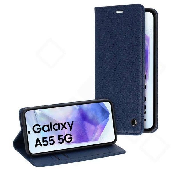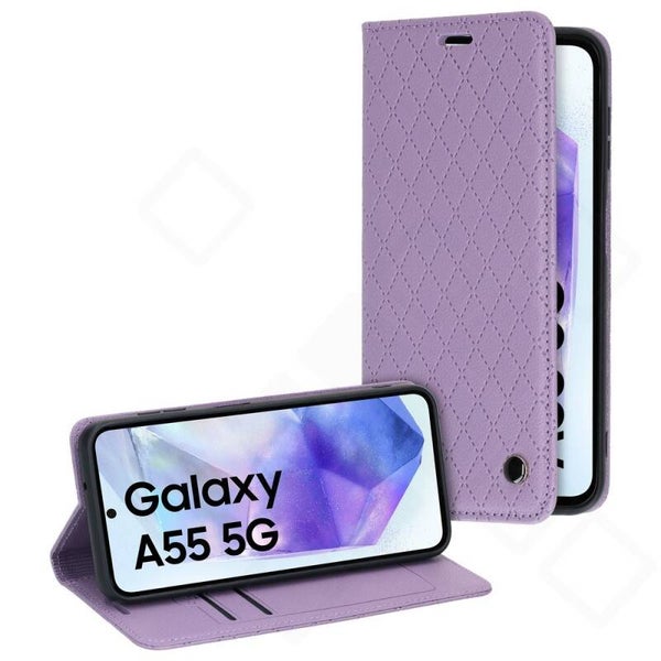 Das Bookcase Style Magnetic Case für Samsung Galaxy A55 5G (A556B) vereint elegantes Design und praktischen Schutz. Die Hülle besteht aus hochwertigem PU-Leder und überzeugt durch ihre feine Karo-Naht und angenehme Haptik. Im Inneren sorgt ein weiches Futter dafür, dass das Display Ihres Galaxy A55 optimal vor Kratzern und Staub geschützt bleibt.