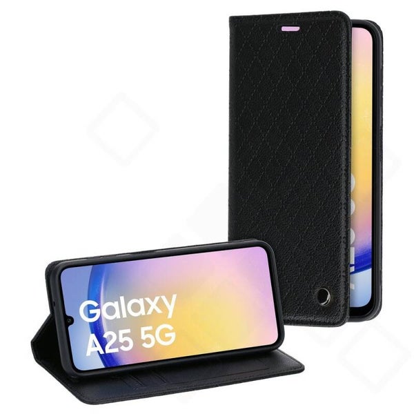 Die anco Bookcase Style Magnetic Hülle für das Samsung Galaxy A25 5G (A256B) vereint elegantes Design und zuverlässigen Rundumschutz. Das hochwertige PU-Leder mit feinen Karo-Nähten sorgt für eine angenehme Haptik und verleiht deinem Smartphone einen edlen Look.